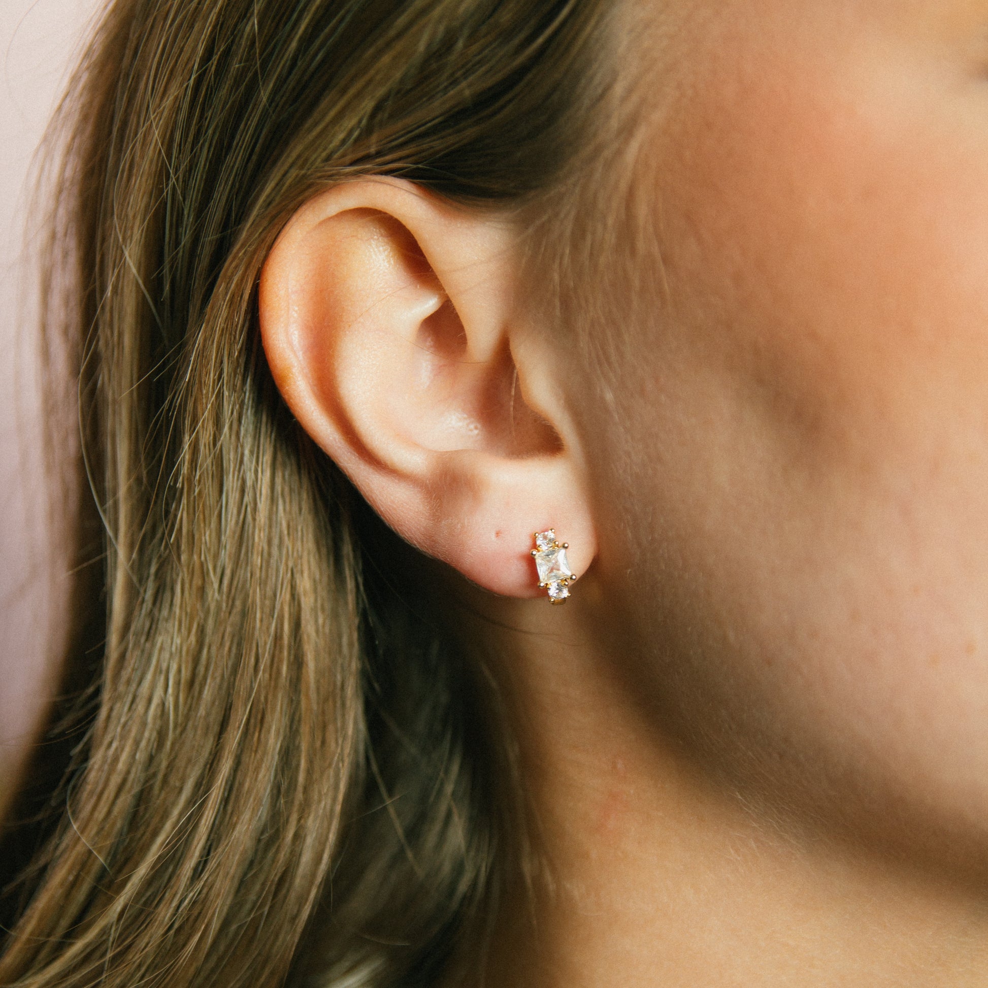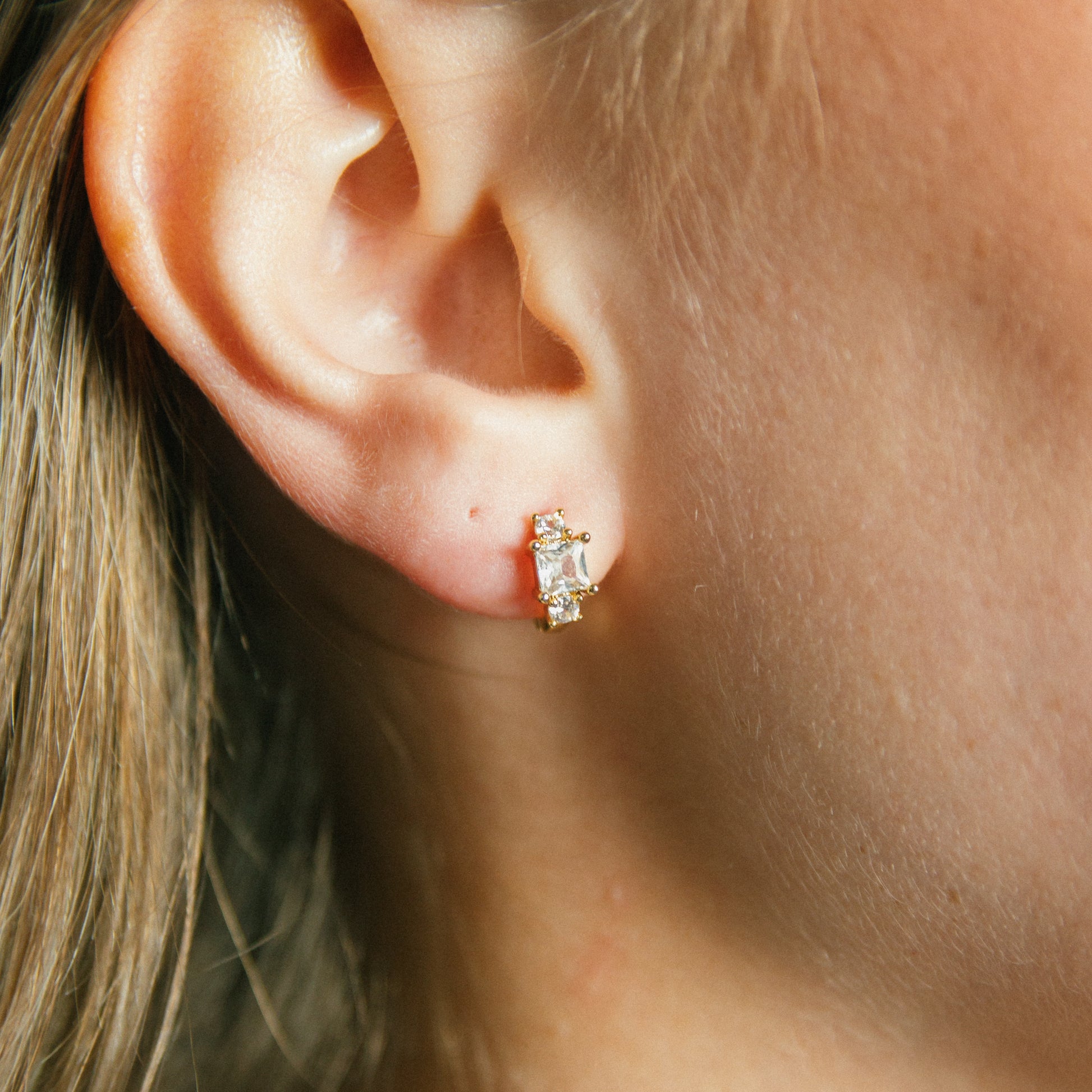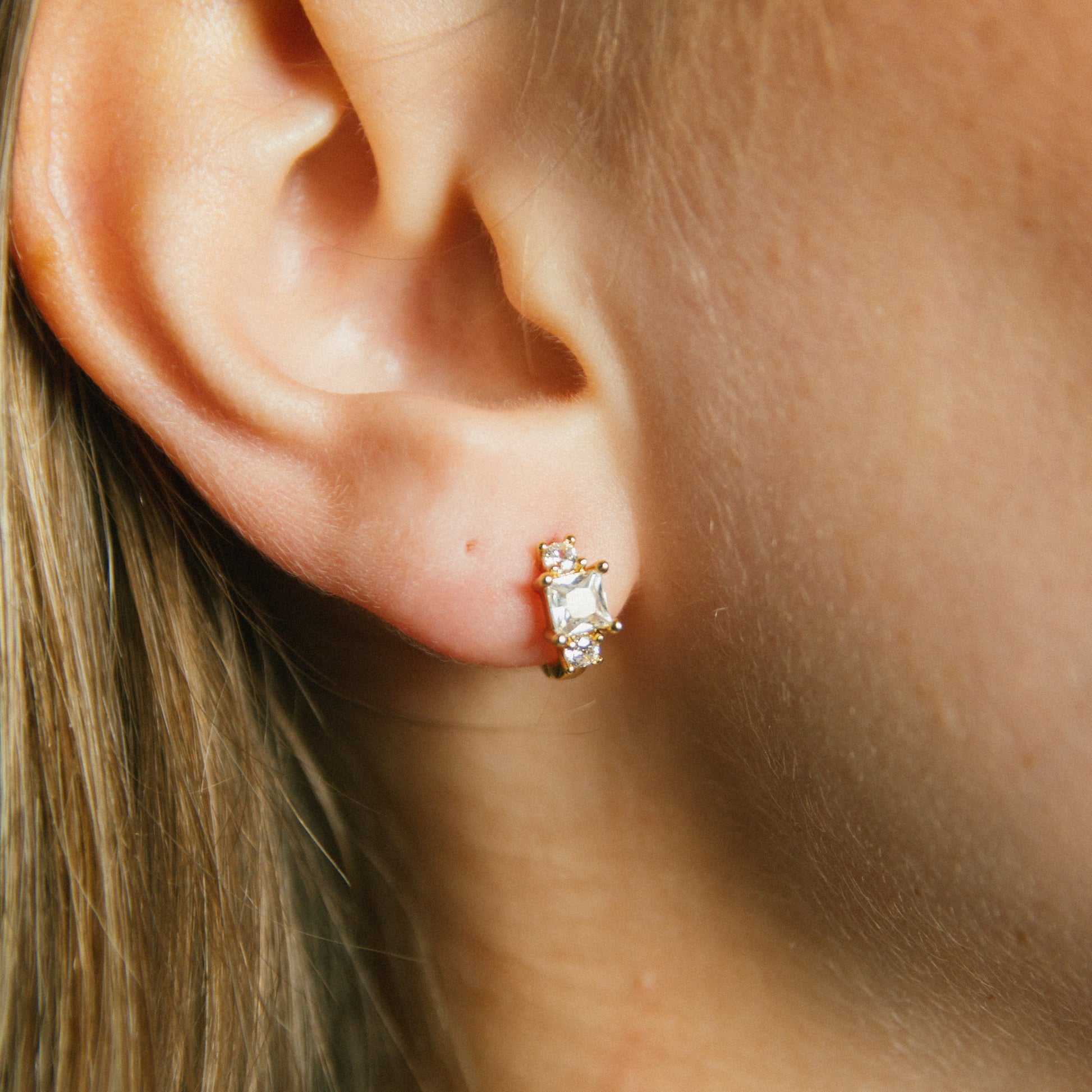 -dainty little huggies with clear square CZs