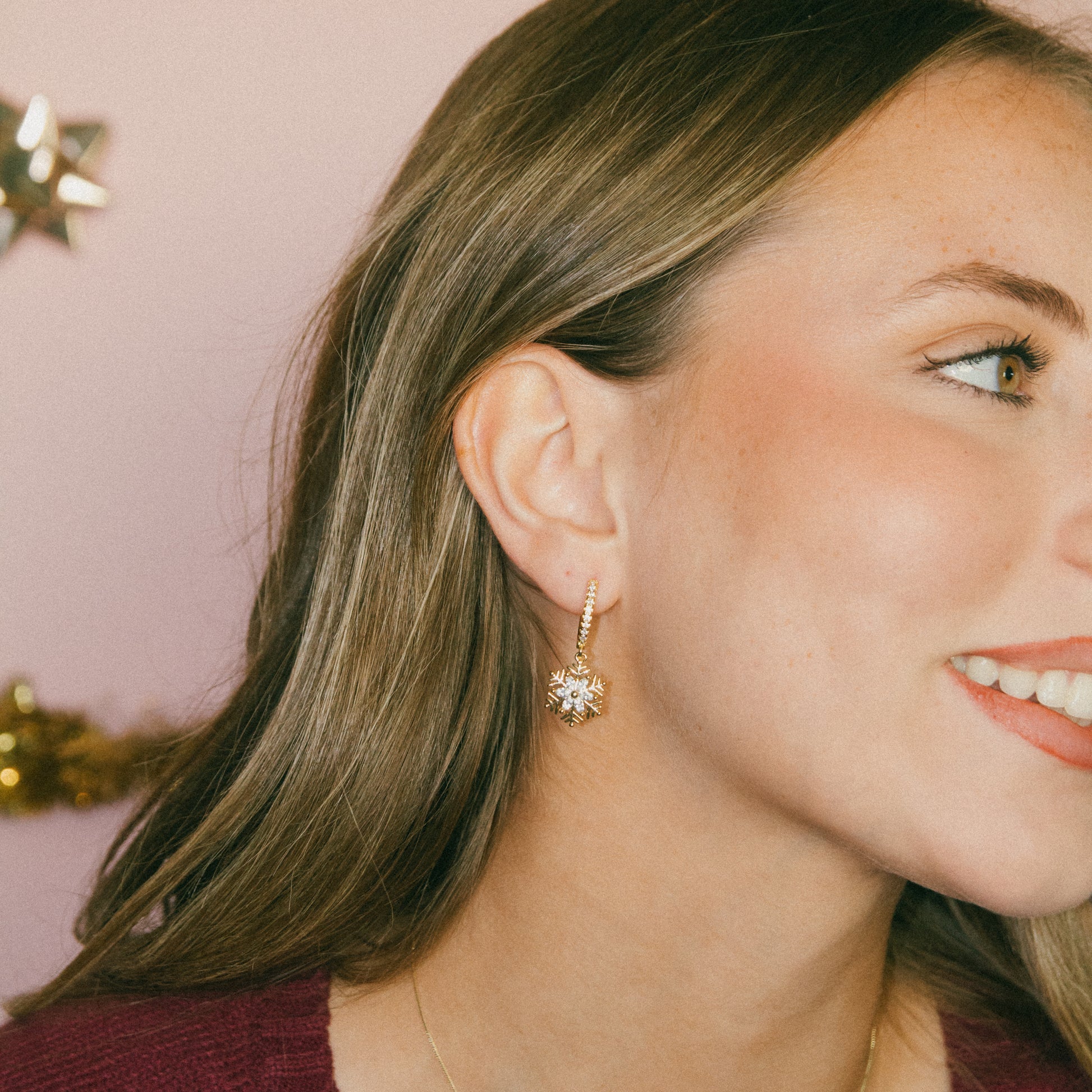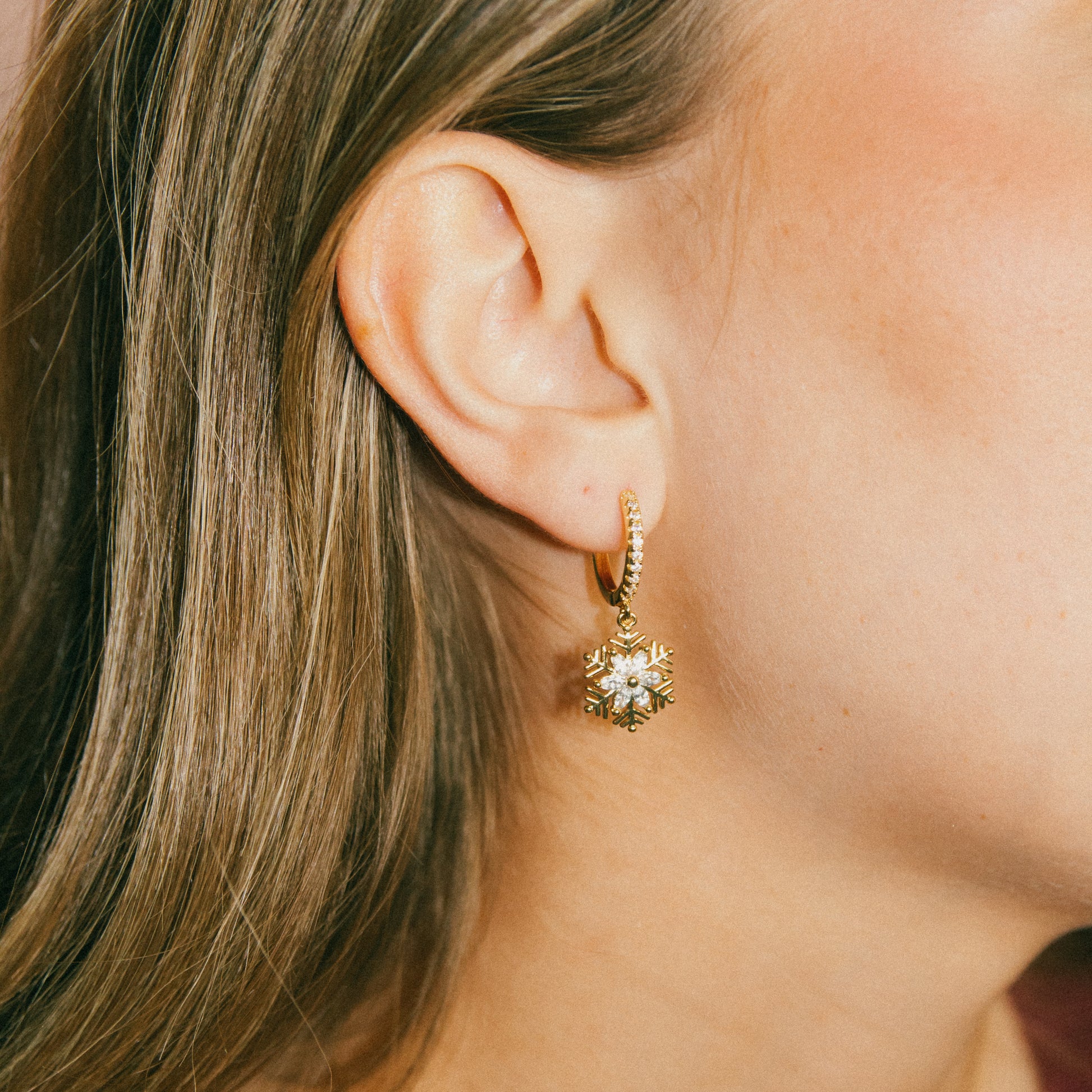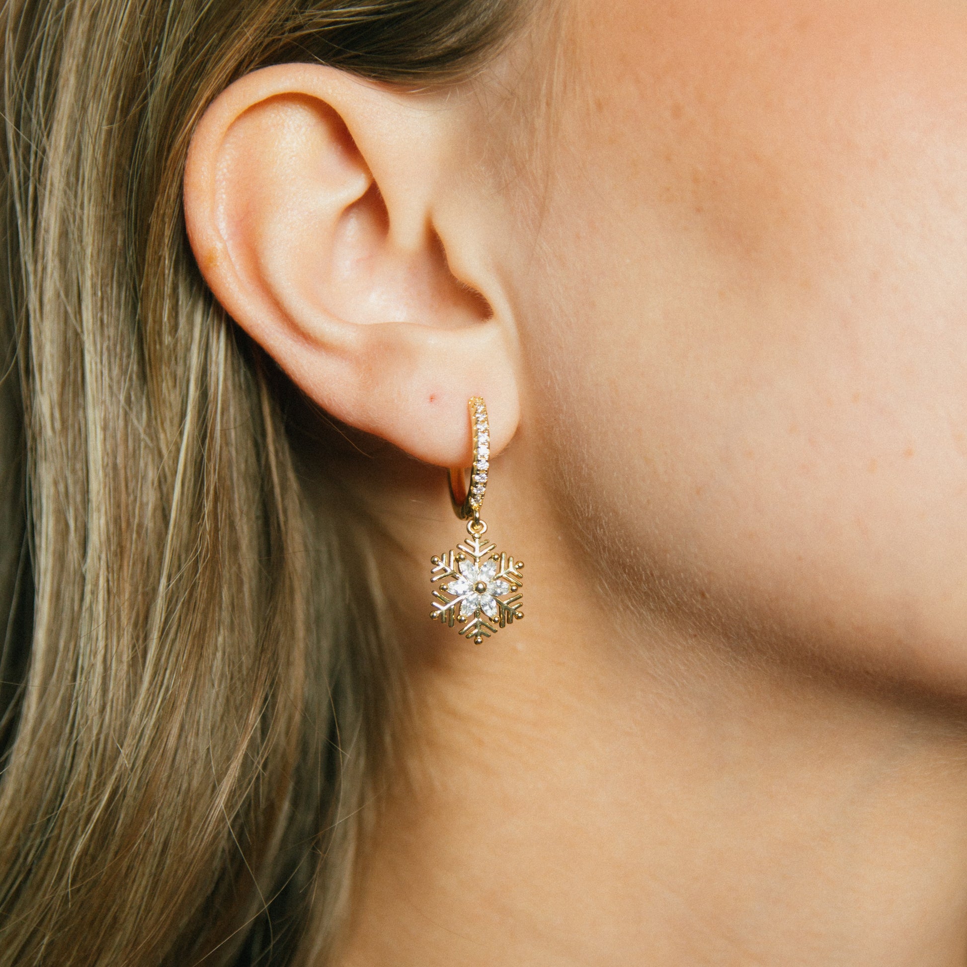 -clear CZ lined huggies with sparkling clear CZ snowflake charms!