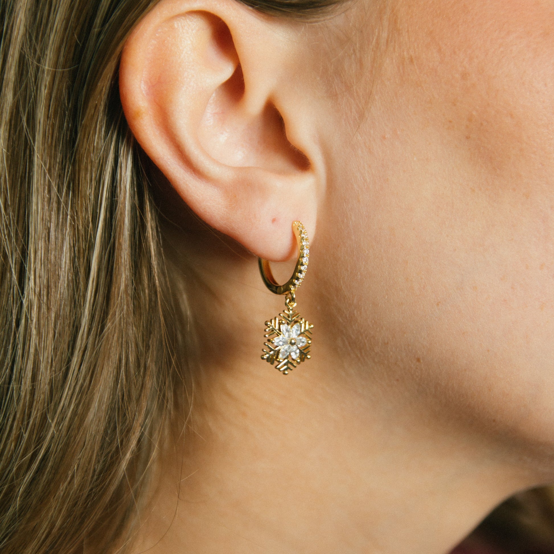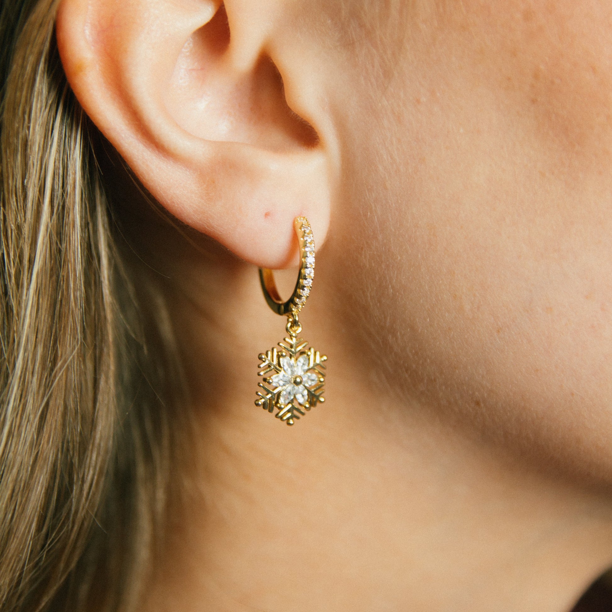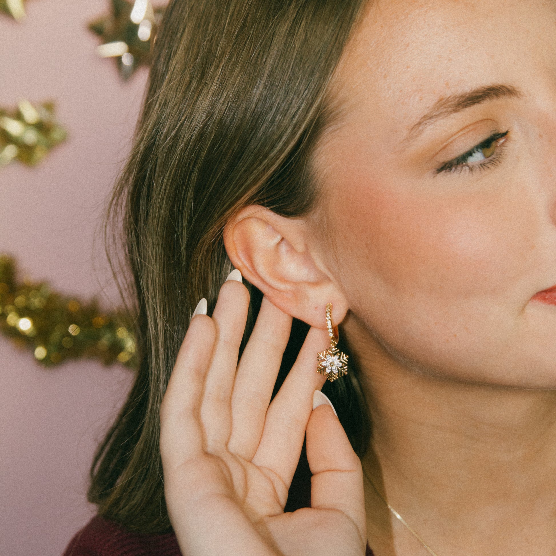 -clear CZ lined huggies with sparkling clear CZ snowflake charms!
