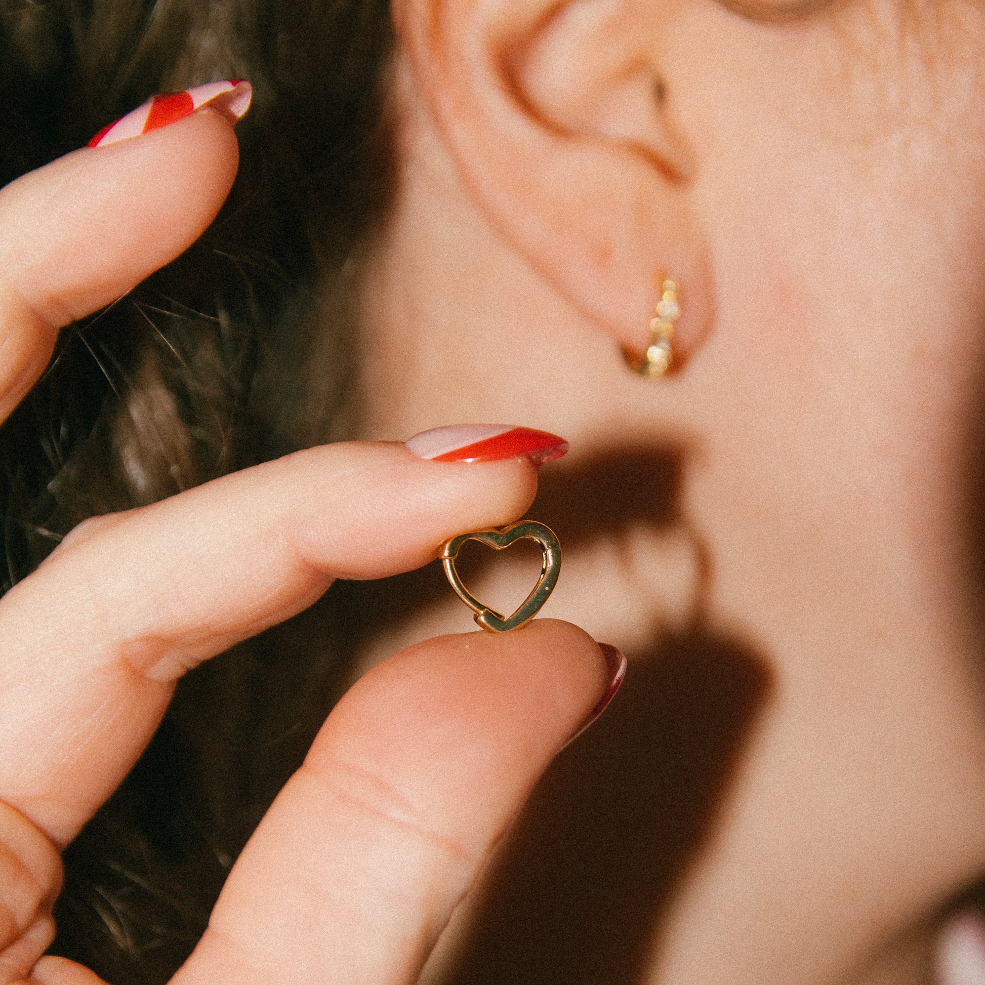 -heart shaped huggies with CZ lining the front